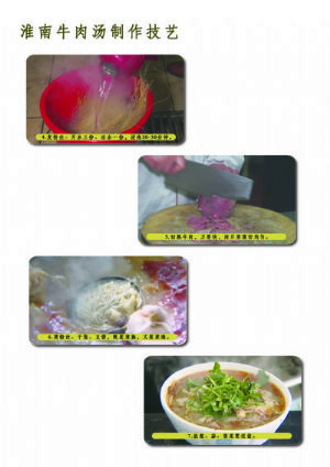 制作时,牛肉、牛骨浸泡清除血污;水、牛肉、牛骨按100:20:30的比例;大火烧,慢火熬3-4小时;香辛调味料按高汤的比例使用;辣椒油制作,辣椒1份,牛油3份,油开后把辣椒微湿倒进油中,用芝麻作为看点,芝麻发黄色为准;高汤500克,盐6克、香料0.5克,鸡精1克;切熟牛肉,刀要快,肉要薄而均匀;发粉丝,用开水3份、凉水1份,倒进粉丝中,粉丝发软为准;一定要用瓷器碗盛汤,否则变味;高汤盛碗前一定要保持80℃以上,起到消毒杀菌作用。