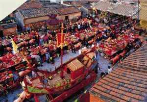 在厦门沿海一些村落有举行送王船的仪式,送王船是送“代天巡持”的王爷,已有500多年的历史。此王爷并非代表“瘟祷”,而是代替皇帝巡游四方、赏善罚恶、保佑风调雨顺、国泰民安。一般是三到四年举行一次,通过掷笺在固定的农历月份确定某一天举行送王船仪式:造一艘王船,把王爷请上船,在海边焚烧。