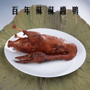 苏苏酱鸭制作工艺已有百年历史,苏苏酱鸭创始人刘克辉,别名“苏苏”,便以此作为店名。刘克辉的祖辈都是靠卖汤鸭谋生,他在继承祖业的基础上发展创新,从粗加工低利润的汤鸭到精加工的酱鸭,发展成烹制酱鸭里手,还自办鸭场,饲养优质肉鸭,确保足够数量的优质鸭源,自设作坊,生产优质伏酱、酿造福州老酒。所制的酱鸭除了鸭的原味外,香味扑面,肉质脆软不腐,肥而不腻,骨中有味,独具风味。