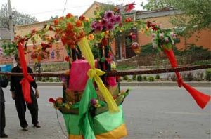 李家村的皇杠起源于明朝末期崇祯年间,源于民间的求雨和祭祀龙王仪式。经过历年的丰富和发展逐渐形成了包括高跷、皇杠、帏子、威风锣鼓、探马、三眼枪、坐地炮等形式的民间花会艺术综合体。其中皇杠两付,由一根五米长的木杠为一中心杠,中间上设一平台,平台上安放菩萨、寿星、仙鹤等供奉偶像,由二人分别各抬一付,在街头行进间表演,祈求新年吉祥如意,风调雨顺,五谷丰登,俗你皇杠。平台周围还装饰有诸如彩绸,谷穗、仙桃等饰物,十分鲜艳夺目。加上木杠用有弹性的榆木制成,抬起来上下颤动,再配以抬杠人优美的动作,表演起来令人赏心悦目。尤其是演到高朝时,抬杠人还要绑上高跷加以表演,更是0迭起,新奇喜人。皇杠表演过程中,周围还有24杆大头纬子,由持纬杆的姑娘媳妇们踏着鼓点随皇杠跑动,煞是壮观。整个演出需要有120余人参加,气势十分威风壮观,闻名远近。 BNBVISTA.COM