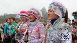 (2)衣服:旧时红头苗的衣服通常是白色麻布做成,胸前作交叉束于腰间,没有扣子,衣领成四方形绣片垂于背后,前襟两辨边缘绣黄、红两色小边花,用红布包边与衣领相统一;袖子为七分袖,有五分是精美的与衣领颜色一样的绣片。到了90年代后,衣服的颜色主要有蓝色、白色、蓝花、灰色等,衣服的式样和绣花与过去差别不大。 内容来自 BNBVISTA.COM