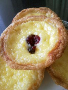 9.利用冷藏的时候做挞水。 做法: (1) 倒入淡奶油、牛奶、糖、炼乳加热并不断搅拌至糖完全溶化,冷却。 (2) 一个一个加入蛋黄打均,放入低粉拌匀,过筛备用。 (3) 冷藏好的挞皮卷均匀的切成12个小卷。