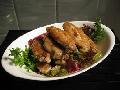 做法:1、将南瓜去皮切成厚片,码入盘中,咸肉切片,摆放在...
