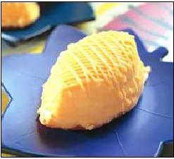 5.)将作法4挤入柠檬状烤模内约7分满,入烤箱以上火200℃、下火16℃烤约15 分钟,可用手轻压测试,若有弹性及扎实感即可出炉,将蛋糕脱模备用。