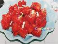 做法:1)把茄子去蒂洗净去皮,切4厘米长、1厘米见方的条,放...