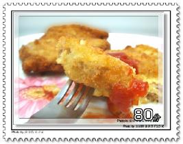 5.把焯过的猪扒,依次按照——面粉,鸡蛋料酒液,面包糠,再鸡蛋料酒液,再面包糠的次序,沾好材料,放入烧至五成热的油锅中,用中火炸至金黄色,即可取出装盘。