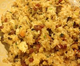 做法:1.萝卜擦丝,烫熟后把水份挤掉 2.猪肉、腊肉、腊肠切粒...