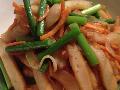 步骤3:锅中加适当的油,油七成热加入姜片,葱段爆香下,再倒入待用的猪肉煸炒3,4分钟这样,然后加酱油,料酒翻炒均匀