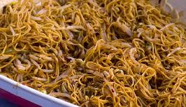 3. 将水烧开(水要多),下面煮熟捞出(面要少煮会儿,在家时面是煮成8-9成熟,最后凉下来的过程中,面会熟的。如果用油面,可以直接用冷水冲凉,然后把水沥干,这样健康点),用少量的油 (vegetable oil就行)拌匀,一边拌一边用风扇把面给吹凉。不要留水在面里,要干的面条。