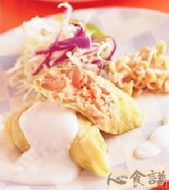 做法: 将紫菜用开水烫一下,沥去水分。红菜椒切成细丝。 大...