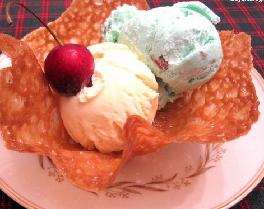5.做好的姜饼碗可以放置在封闭的容器内一个星期,吃的时候舀上冰淇淋,洒上些饼干屑就可以了。