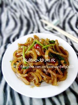 做法:1.买回的猪皮刮洗干净(刮好大概0.5厘米厚,一定要尽量...