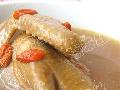再将干贝丝放入油锅中,改用小火慢慢炸制成金黄色,后捞出用厨房用纸吸干油分。