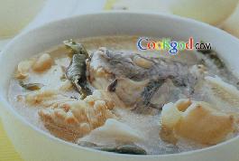 3、山药、海带、猪蹄、花生、豆腐干丝加适量水先炖煮1小时,再放入鲫鱼炖煮半小时。