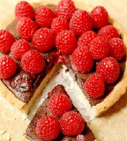 4.把做好的Filling材料倒入塔皮里,覆盖着Raspberries。放入烤箱烤15分钟。直到竹签查入Filling里取出是干净的就好了。