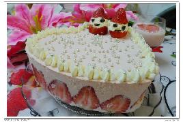 慕斯馅材料: 草莓400G(我这草莓是上周跟某同学去摘嘀)安佳淡奶300G,糖20G,草莓味QQ糖75克一包,(或是放吉利丁片,我个人认为放草莓味的QQ糖比较香甜,慕斯馅的颜色也红一些)牛奶100G