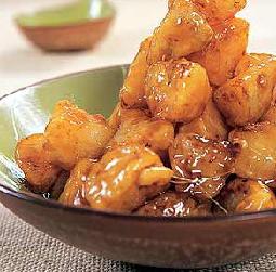 3、锅内留油少许,放入冰糖面和和一调匙清水,加桂花卤熬糖,待糖汁表面的大气泡变小,糖以开始变微微有点浅红色时,马上将炸过的山药倒入勺中搅动,用糖汁将山药包均,倒入涂油的盘中,迅速上席即可。上菜时外带一碗凉开水用筷子蘸水食用。