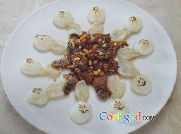 做法:材料 碎燕窝(干货)20克,姜2片,虾胶200克,带子4粒,食...