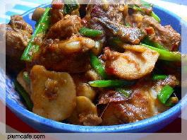 依次沿炒锅内沿淋入料酒(或黄酒)和老抽,炒匀后加入可以没过排骨的沸水,转入砂锅中,再次沸腾后改小火慢炖1小时。
