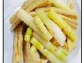 做法:1、将木耳、冬笋分别切片。熟大肠切段,下入沸水锅内...