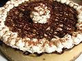 (5)将作法(1)与模型同大的巧克力派1片浸入作法(2)的混合咖啡液中片刻,再取出置入模型内,接着再倒入作法(4)的馅料,再次排入1片稍小并浸泡过咖啡液的巧克力派,再倒入一层馅料至满即可。