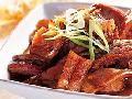 做法:1.将肥肠煮熟后洗净,切成块; 2.青蒜切成段; 3.葱切段...