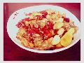 5. 将面粉、融化的奶油加入作法4中,再铺平于锡箔纸上,以上火200℃,下火170℃烤熟即为栗子果泥。