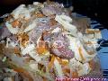 做法:1.将滤除汁液的韩国泡菜切成适当大小,连同汁液混合备...