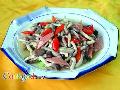 做法:1.姜削去皮切片,红辣椒切丝,将水和白糖放入锅中煮溶...