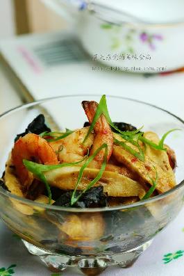 做法:1.将熟的小章鱼切段备用。 2.将作法1的小章鱼段加入马铃...