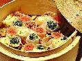 做法:1.煮沸上汤。 2.先加入猪肉片,中火煮2分钟。 3.加入黄芽...
