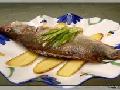 做法:1.将鱼宰杀洗净,在鱼体两面划上花刀,放在抹过油的盘...