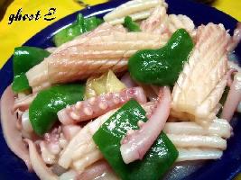 做法:1、鱿鱼须洗净,加盐3克、蚝油、胡椒粉、姜块、葱段腌...
