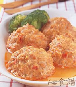 5.将作法4捏好的狮子头置于盘中,再放进蒸笼里,以大火蒸20分钟。