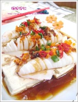做法:1.将花枝身切成花状,再用沸水汆烫约分钟后,过冰水,...