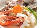 3. 锅内加底油,开幕中火,先加入香肠、红萝卜、水发香菇、水泡黄花菜、洋葱翻炒二分钟,然后倒入水泡的米粉干翻炒至熟,加入青菜、适量的盐、味精、胡椒粉拌匀装盘备用.