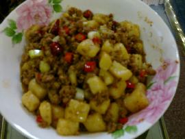 做法:1、牛仔盖改刀成条状,入油炸至八成熟。 2、勺内加底油...