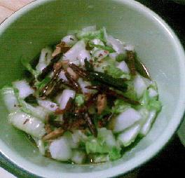 做法:1.先把粉丝泡开,白菜邦切条,白菜叶切块. 2.油锅烧热,...