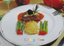 (5)牛柳在扒炉上扒熟,装盆,配上芦笋等,淋上(3)即可。