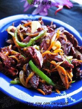 做法:1.将猪肉切成500克重长条状,洗净晾干。 2.烧红锅把盐同...