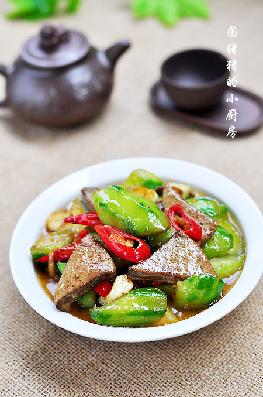 11.加入事先炒好的猪肝,生抽1大匙 砂糖1茶匙