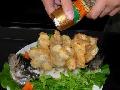做法:1)去头开背虾洗净去壳(只留尾部的虾壳),在背部划...