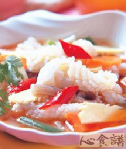 做法:(1)将鸡胸肉洗净切片备用。 (2)将豌豆酱及水、盐、胡椒...