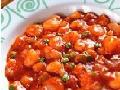 4、迅速将锅中再次放入底油,放入番茄酱煸香,加入适量清水,加入豌豆、姜片、虾仁,调入白砂糖、盐,略煮两分钟,用水淀粉(剩下的淀粉制成水淀粉)勾芡出锅,浇到炸好的锅巴上即可。