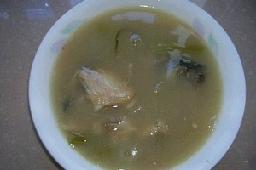做法:1.将新鲜盖菜洗净后沥干水分,叶茎分开撕成小块。 2.锅...