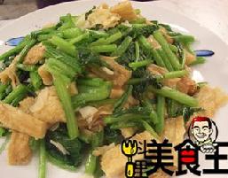 2.锅内倒入油烧热,先煎香油豆包,再放入蒜头爆香后,放入菠菜、胡椒粉、盐和香油拌炒均匀即可完成
