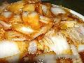 3.将鸡腿肉洗净,撒上少许盐,静置10分钟,再用浓度5%的酒水(酒5㏄、水100㏄混合)洗净,沥干后切丝备用。