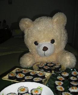 PS:如果大家喜欢,还可以在包饭中加入自己喜欢的东东,比如我很喜欢吃金枪鱼紫菜包饭。^_^