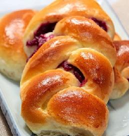 2:鸡蛋1只,动物性鲜奶油(whipping cream)1/2杯(118克),牛奶1/2杯+1大匙(134克),白糖1/2杯(105克),奶粉2大匙(11克),中筋面粉 (All purpose flour) 3杯减2大匙(475克),面筋粉 (Wheat Gluten)3大匙(28克),快速发酵粉(Fast Rising Yeast)2茶匙;