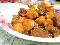 11、煮沸后,下煎好的豆腐皮肉卷,小火焖至汤汁浓稠,撒上葱丝即成。